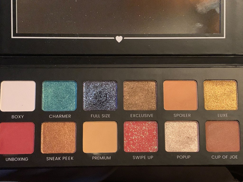 Hello Charmer Eyeshadow Palette from Boxy Charm- I believe this is the product from the company. It’s a beautiful palette that’ is a mix of glitter, metallic, and matte shadows. The palette is very pigmented, however I find this palette is more for night time looks, and its not suitable for daytime/work place. At least for where I work this isn’t suitable, I work in office type environment. The names of the shadows are quite cute it has names like sneak peak, exclusive, and charmer. I did wear this palette out over the weekend, it wore well with little creasing, I wore it for about eight hours. I wore the shades sneak peak and cup of joe. I found that shadows were very smooth and easy to blend.