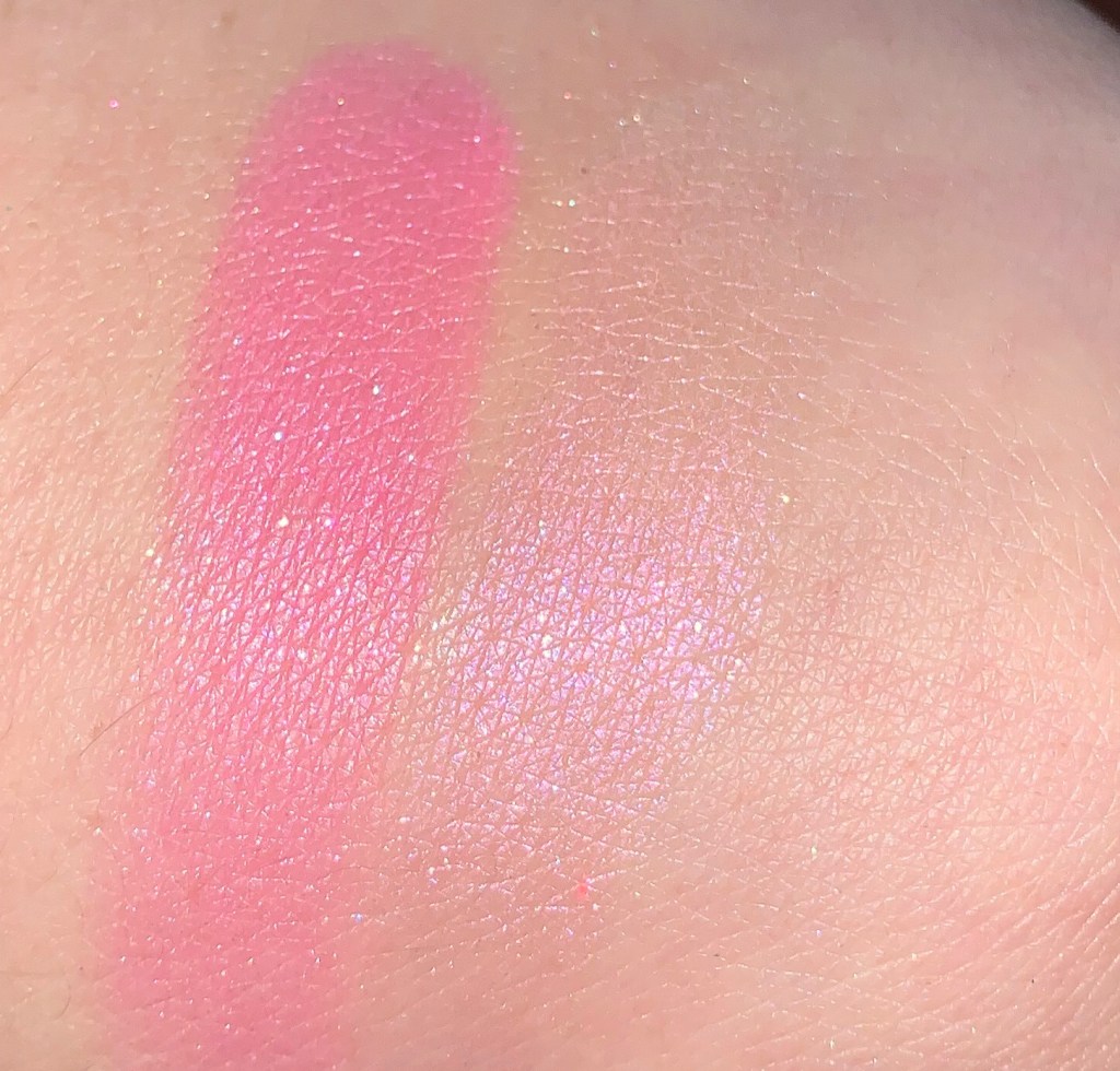 Strawberry – contained two shades jam out and berry sweet. Jam is reddish pink gold flecks in it. Berry sweet is a warmer more champagne pink with that is golden flecks in it.